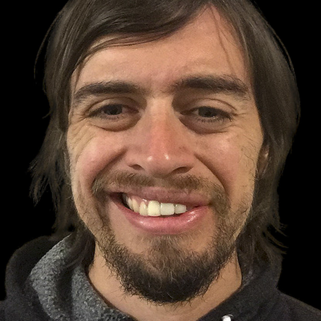 Male is able to achieve a more symmetrical smile after facial paralysis surgery.